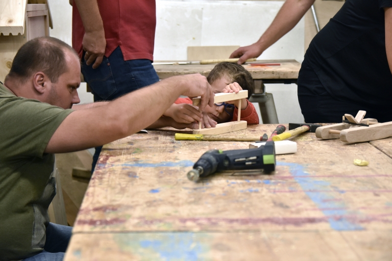 Nauka nowych umiejętności w gronie osób, które znają się na rzeczy i przy okazji potrafią zarażać swoją pasja, to największy skarb. Ekipa Fablab Wbijaj z pewnością zaszczepiła w uczestnikach naszych pierwszych warsztatów stolarskich zamiłowanie do majsterkowania, szlifowania, wiercenia, wkręcania, klejenia. Każdy własnoręcznie wykonał zabawkę z drewna: katamaran (pływający!), łódkę (z żaglem), ptaszka czy aparat. Praktyczne umiejętności zaliczone na szóstkę! Dziękujemy wszystkim uczestnikom i prowadzącym.