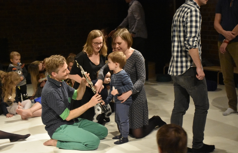 Czy z maluchem warto wybrać się na koncert? Czy będzie w stanie wysiedzieć na miejscu przed 40 minut i tylko słuchać? To odwieczne dylematy i pytania rodziców, którzy są spragnieni kulturalnych wyjść ze swoimi maluchami. Jednak rodzice, którzy są stałymi bywalcami naszych festiwalowych wydarzeń doskonale wiedzą, że warto. Warto było również w przypadku propozycji holenderskiej grupy Muziekvoorstelling pt. ZWIER. Podczas weekendu 16-17 listopada mieliśmy okazję posłuchać niezwykłego występu 5 muzyków. Na koncercie ZWIER dzieci wraz z rodzicami doświadczały dźwięku, jako przestrzennej przygody pobudzającej zmysły. Słuchaliśmy instrumentów takich jak flet piccolo, fagot, obój, klarnet czy waltornia.
